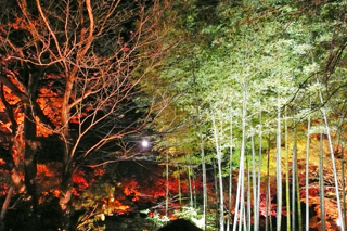 紅葉と竹林とお月様。