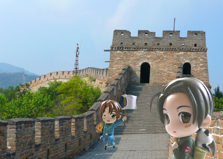 「うっわー!!ここが有名な万里の長城なんだね!!高い!!眺めもいいねー!!」