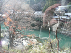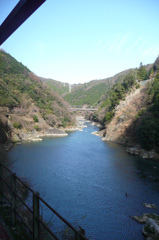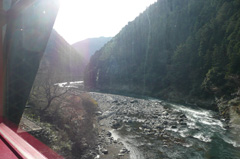 このトロッコ列車、嵯峨野駅-嵐山駅-亀岡駅という区間を走っていて、普通亀岡についたら「保津川下り」というスリル満点の川下りをするのが一般的なのですが、今回はそこまでの時間は無いので普通に往復です。