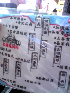 名護屋城回りにはあっちこっちの有名戦国武将の陣跡が130もあって、どこに誰の陣跡があったか書かれてる素晴らしいタオル発見(笑)