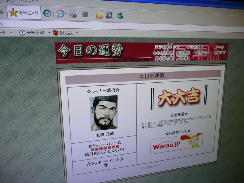 おわわわわ!ネットの波を漂っている最中に、戦国系様でサイト様で今日の運勢を占っていたら