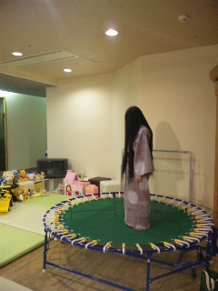 館内でレトログッズ販売していたのでコバヤシが「素敵ーv」と飛びついた横で、真白は隣接してたキッズルームのトランポリンにわーいと飛びつきました。